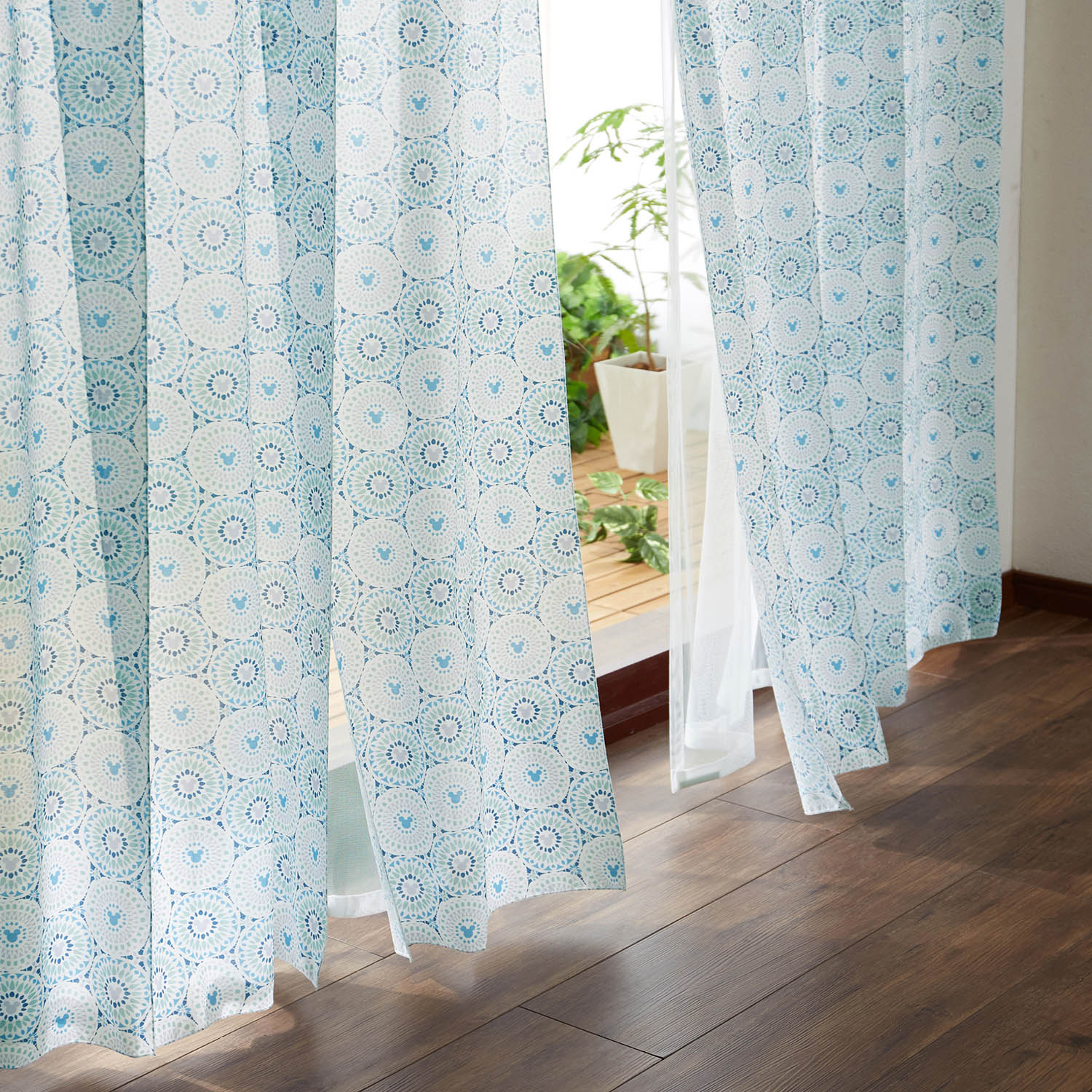 ミッキーモチーフの風を通すUVカット・遮像ボイルカーテン(ディズニー)