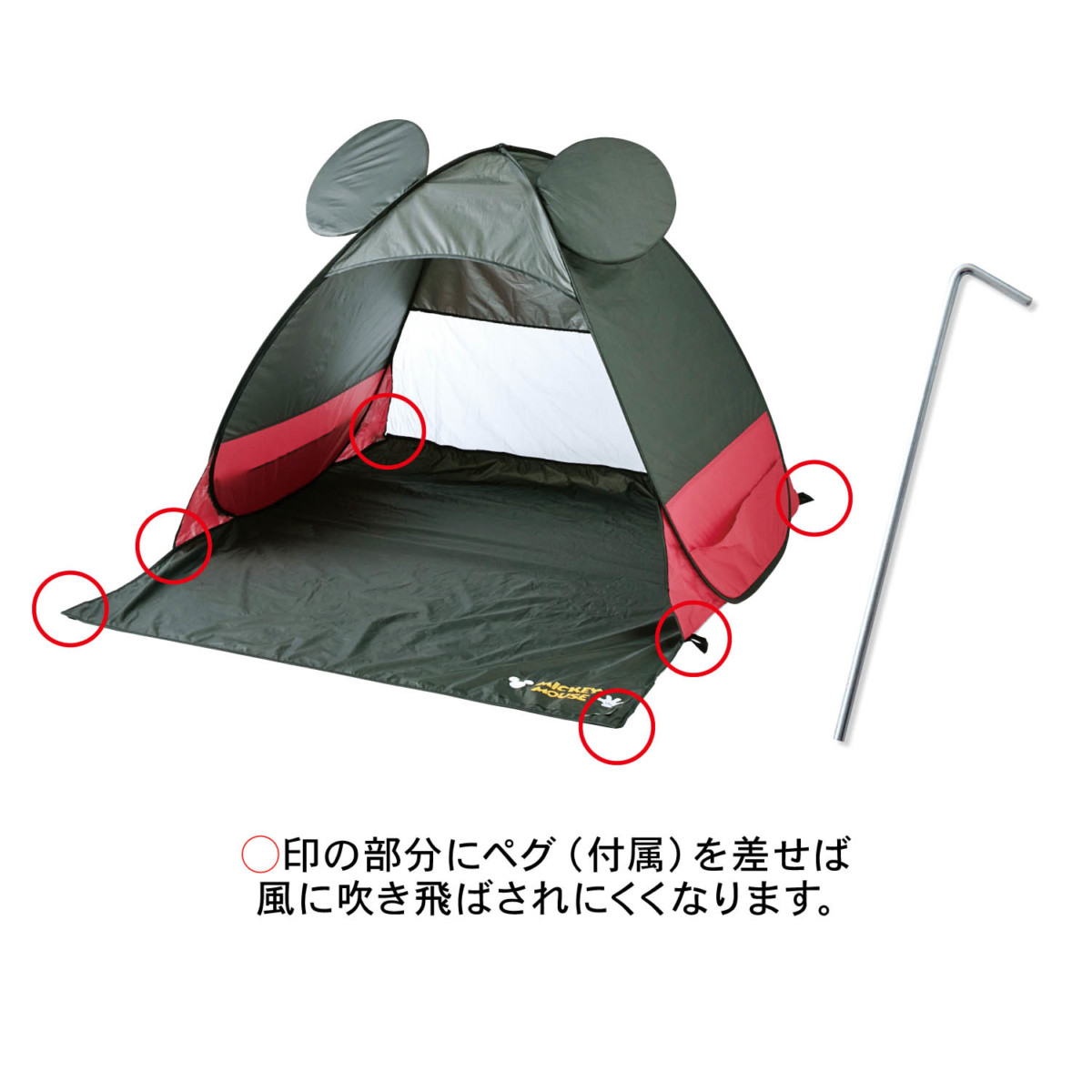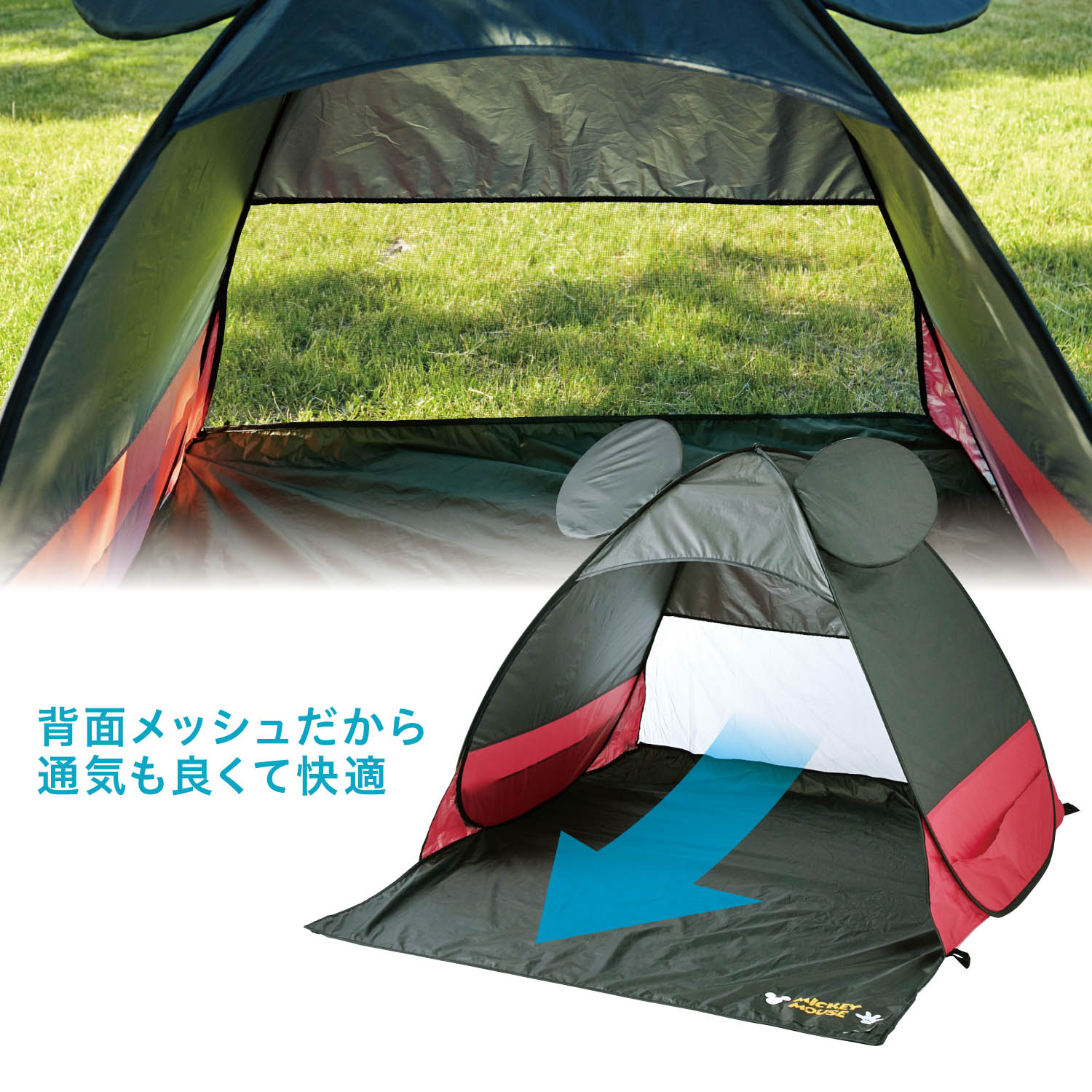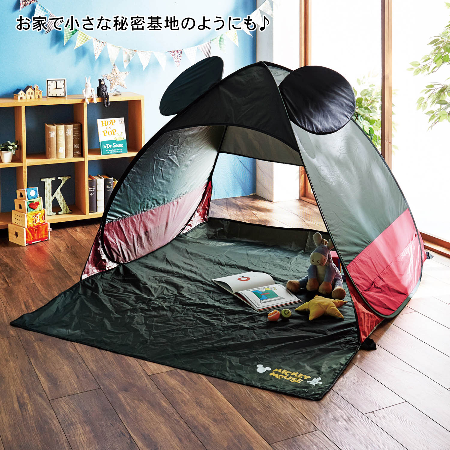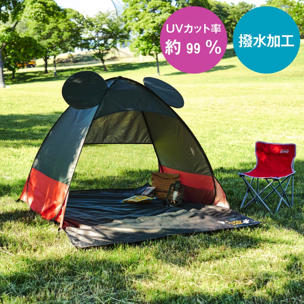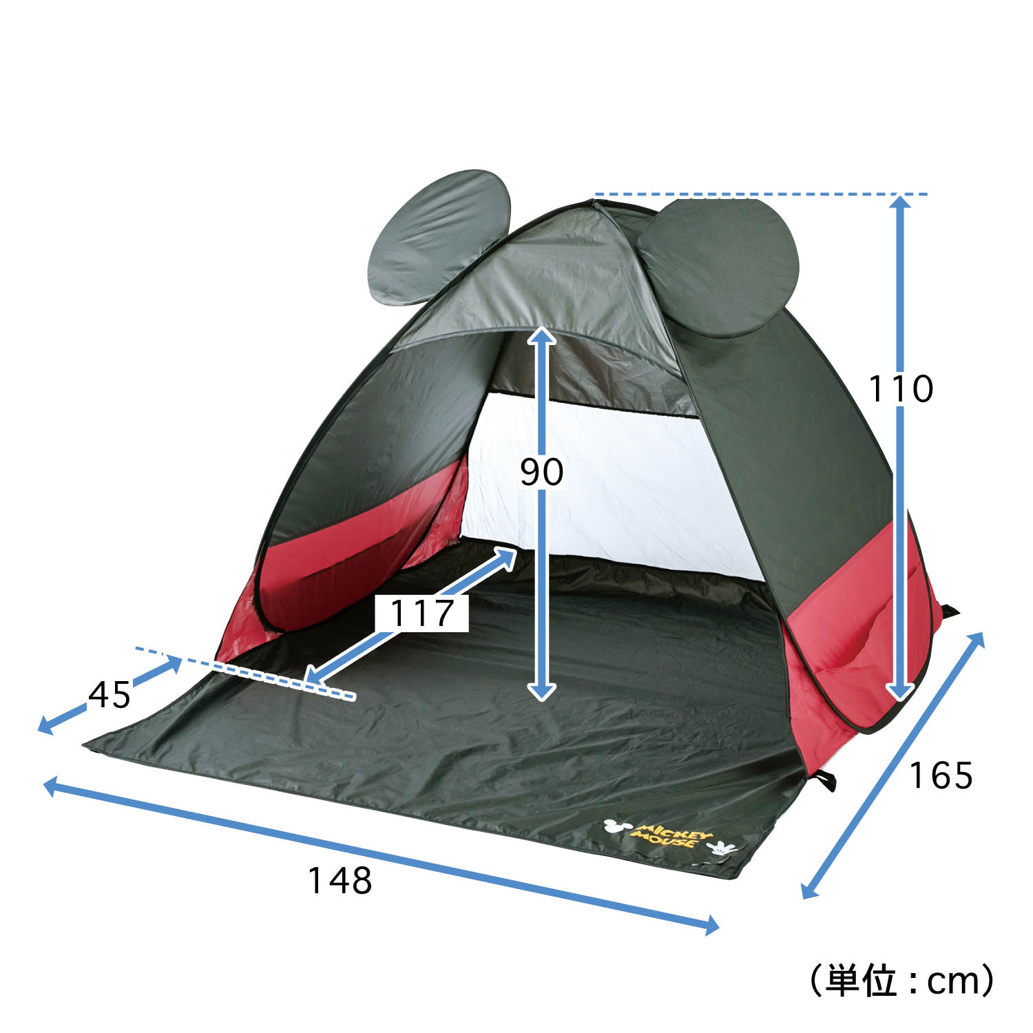 可愛い耳付きで、「ミッキー」のイメージカラーでもある黒と赤を基調にしたポップアップテント☆