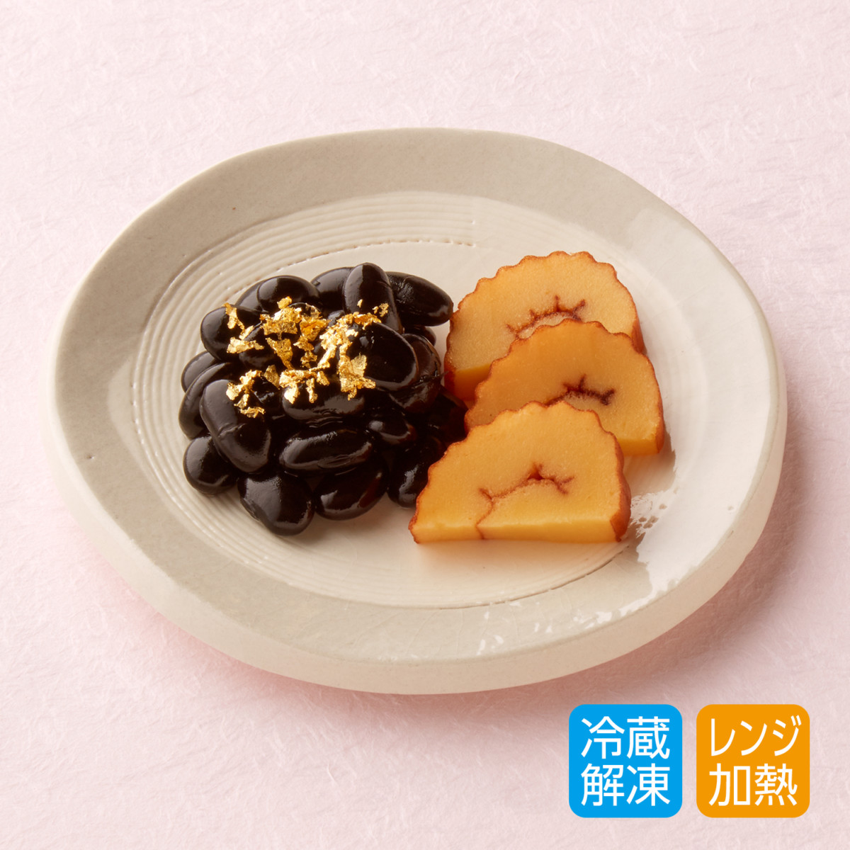 おめでたい席にふさわしい、大粒の黒豆としっとり食感の伊達巻。