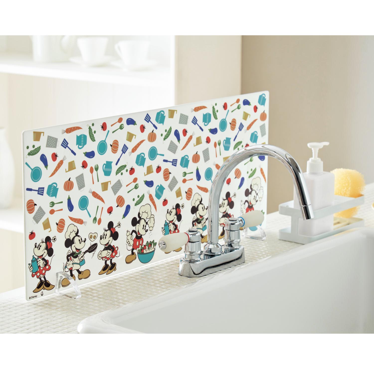 シンク周りを華やかにして水はねもセーブしてくれるディズニーデザインの「目隠しにもなる水はね防止プレート」の紹介でした☆