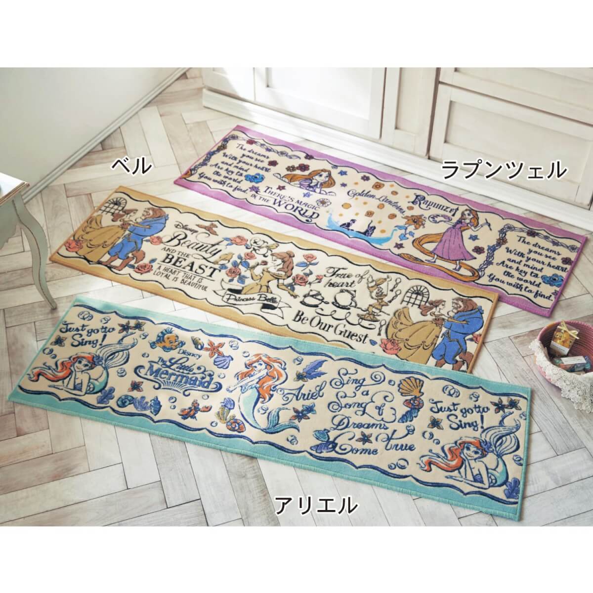 繊細なタッチでキッチンに華を添えてくれるディズニーデザインの「抗菌防臭加工のキッチンマット」の紹介でした☆