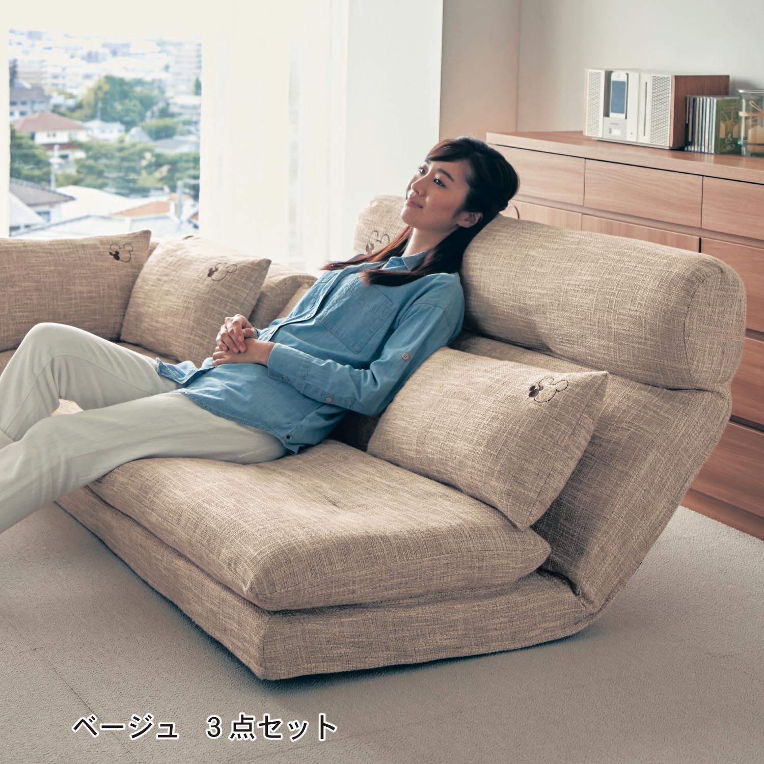 好きな角度で思い切りくつろげる!ベルメゾン ディズニーデザイン「リクライニング組み合わせローソファー」
