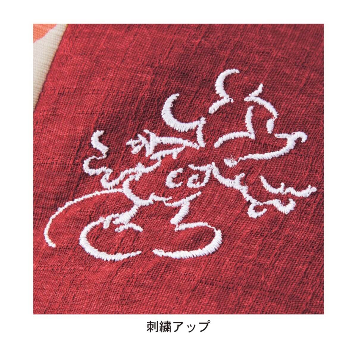 とじ糸や、無地と柄を組み合わせたいかにも京都っぽいあでやかな色柄に、刺繍で「ミッキー」柄をさりげなくあしらい本格的に仕上げています。