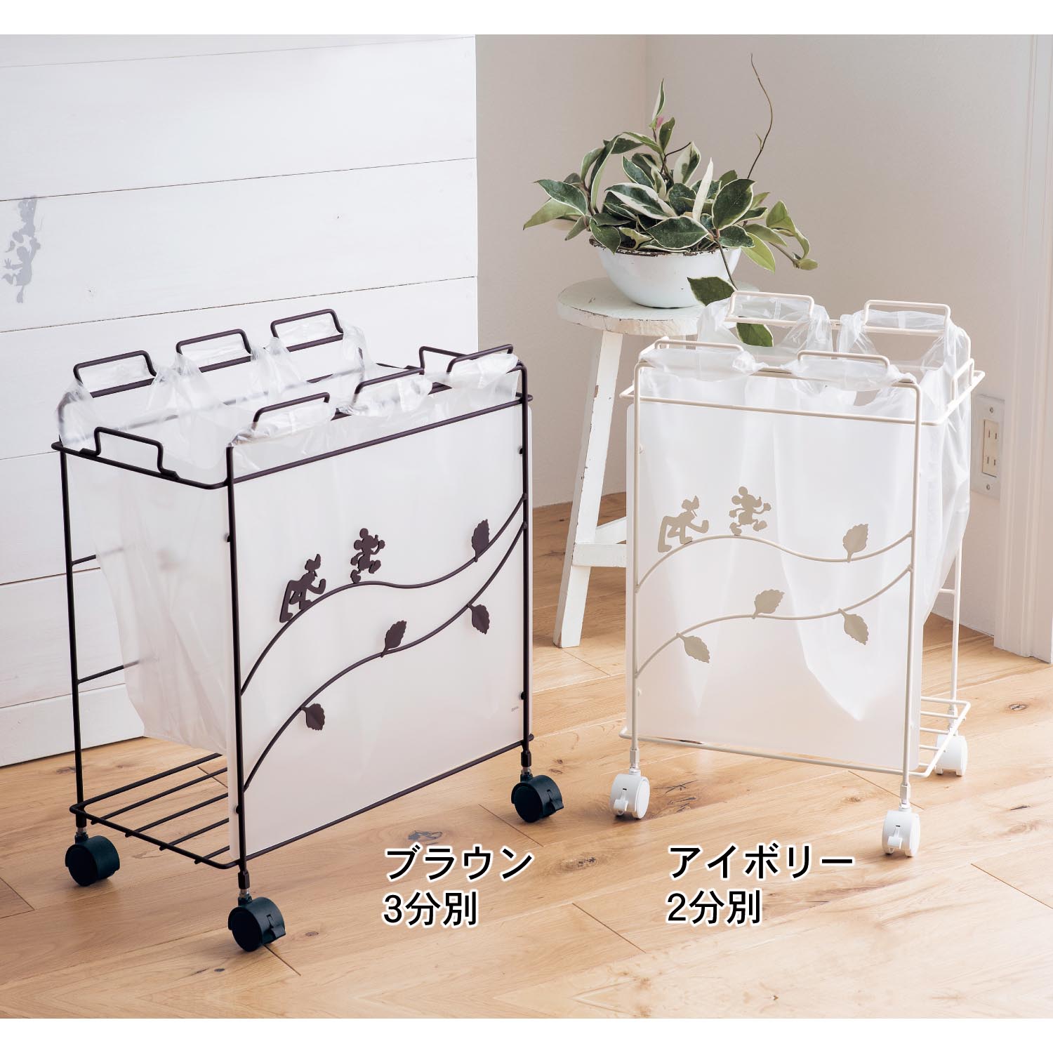 袋を掛けるだけで簡単にセットができるディズニーデザインの「分別ダストボックス」の紹介でした☆