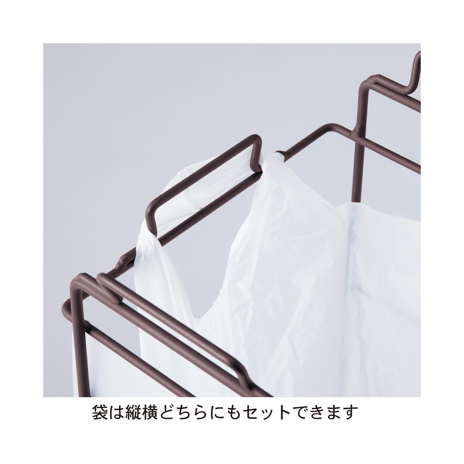 袋は縦と横どちらにもセットできるので、置き場所や使いやすさ、袋の大きさに合わせて調整も◎