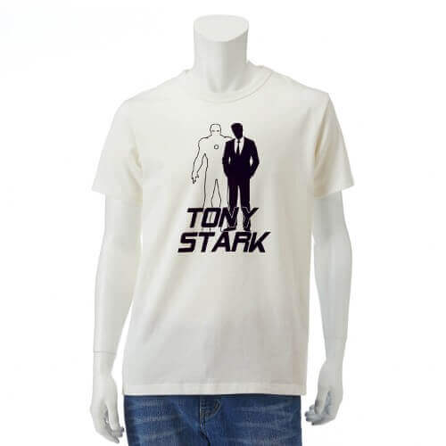 「オフホワイト」には「アイアンマン」と「トニー・スターク」のシルエットと名前をシンプルにプリントされています。