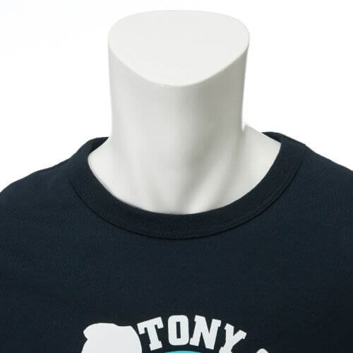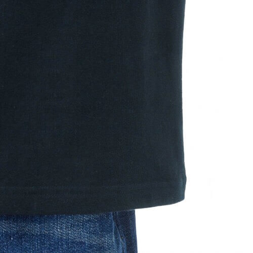 首回りは締め付け感の少ない丸首を採用。