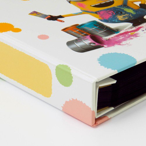 思い出に彩りを添える表紙には「ミニオン」のアートをカラフルにプリント。