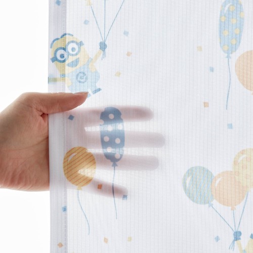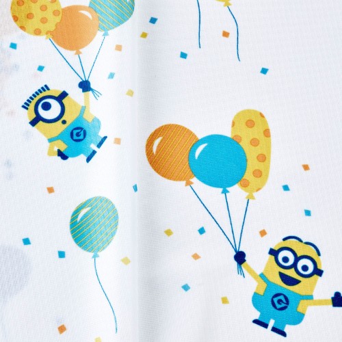 清潔感のある白を基調にした薄手のレースカーテンにも「ミニオン」たちをデザイン。