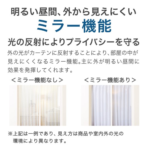 レースカーテンには外光もしっかり取り入れながらも、生地の裏側が光って外から透けにくいミラータイプを採用。
