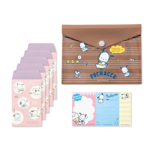 永久不滅のかわいさで大人にも人気のサンリオキャラクターが、クリアポーチにふせんとポチ袋を入れた、ステーショナリーセットになりました☆