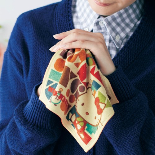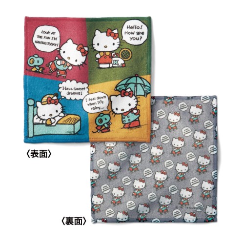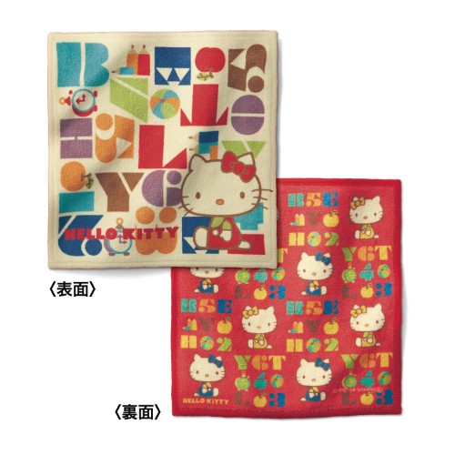 「ハローキティ タイポグラフィ」デザインの両面ハンカチ。