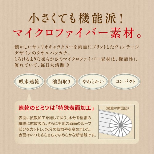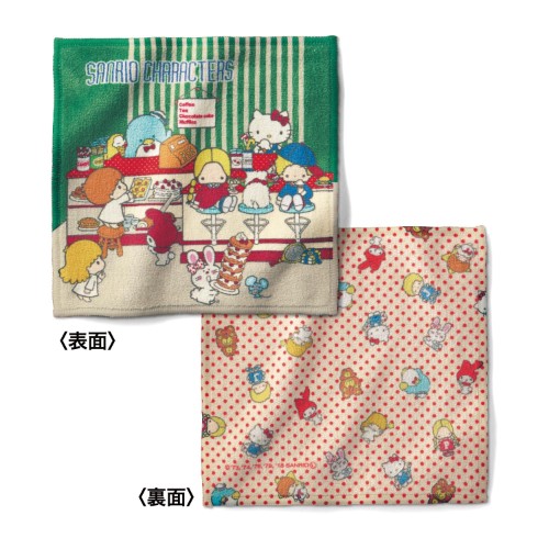 「ヴィンテージな両面ハンカチ(サンリオキャラクターズ)」は、懐かしいサンリオキャラクターを両面にプリントした、ヴィンテージデザインのタオルハンカチ。