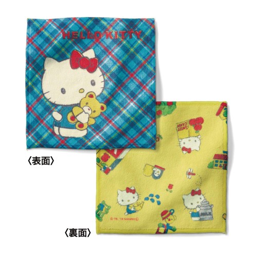 「ハローキティ レトロチェック」デザインの「ヴィンテージな両面ハンカチ」