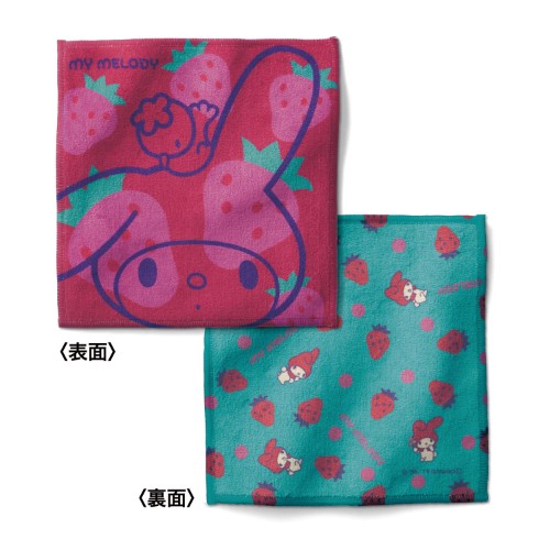 「マイメロディ ストロベリー」デザインの両面ハンカチ。