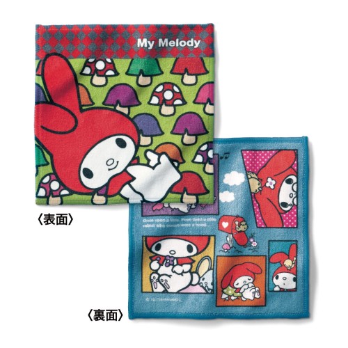 「マイメロディ きのこ」デザインの両面ハンカチ。