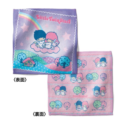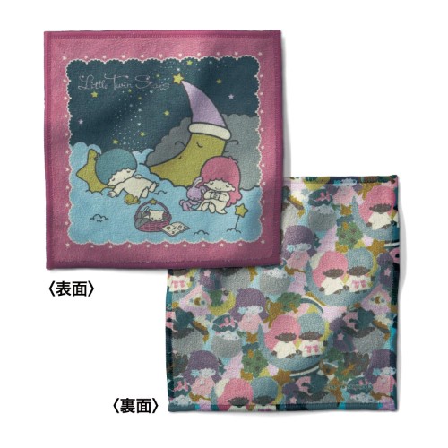 「リトルツインスターズ おやすみ」デザインの両面ハンカチ。