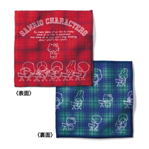 「サンリオキャラクターズ スクール」デザインの両面ハンカチ。
