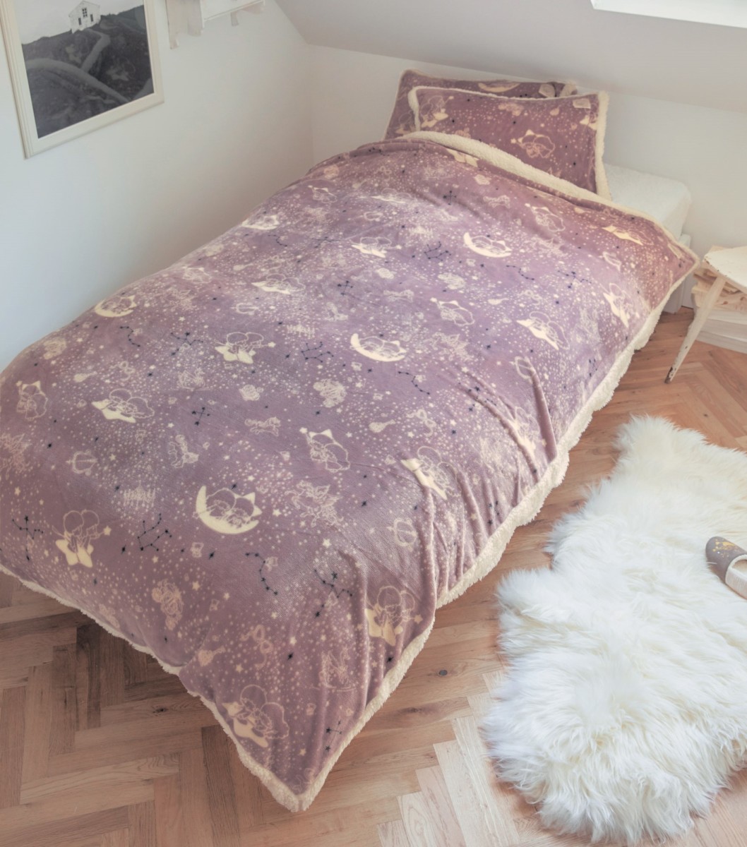 キキ&ララと一緒に夜空をお散歩している気分になれそうな、枕カバーと掛け布団カバー、ボアのボックスシーツまたは敷布団カバーのお得な3点セットです☆