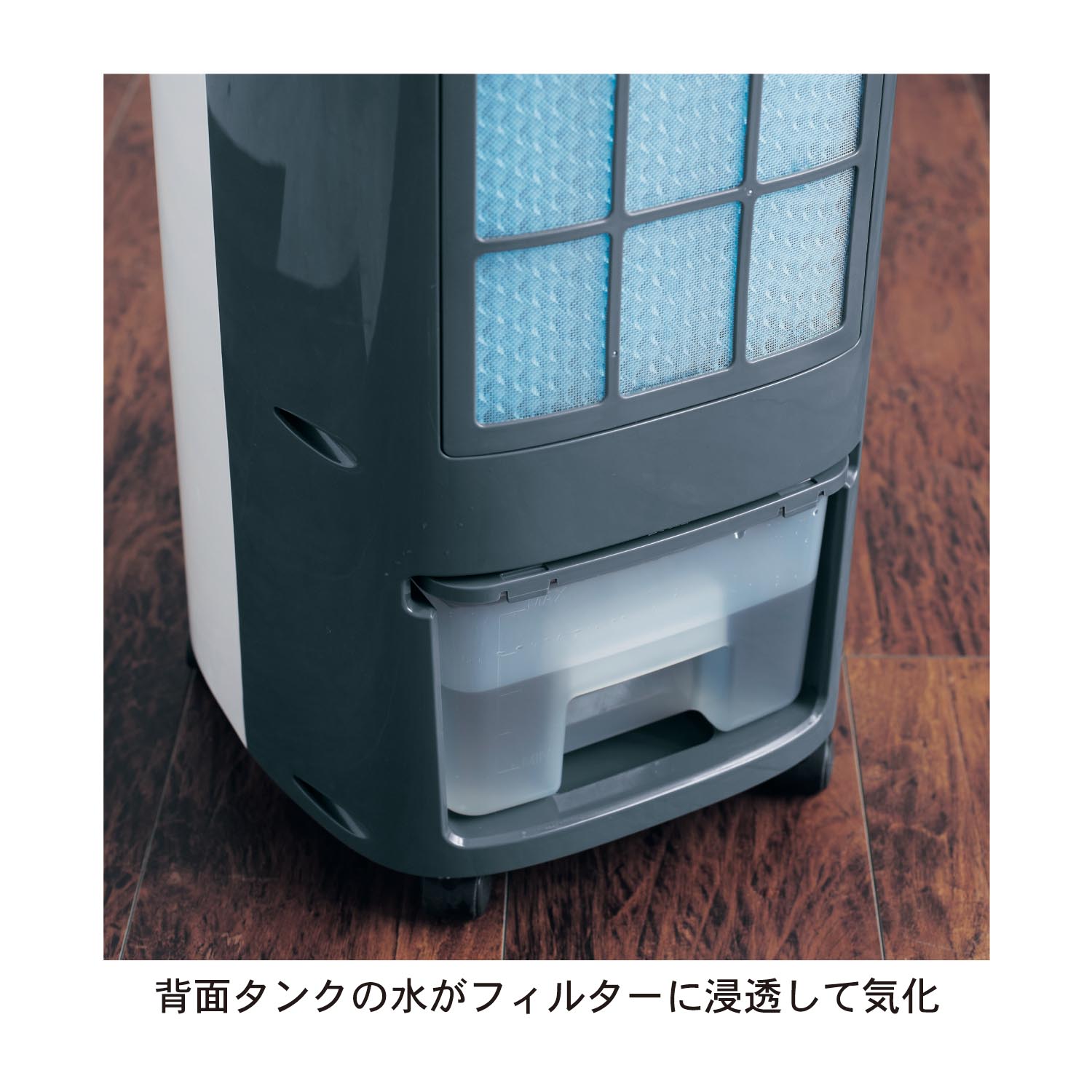気化を利用した、打ち水のような涼しい風を楽しむほか、送風機能だけでも使えます。