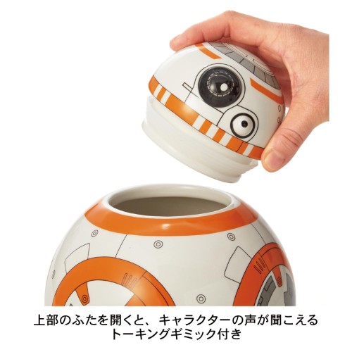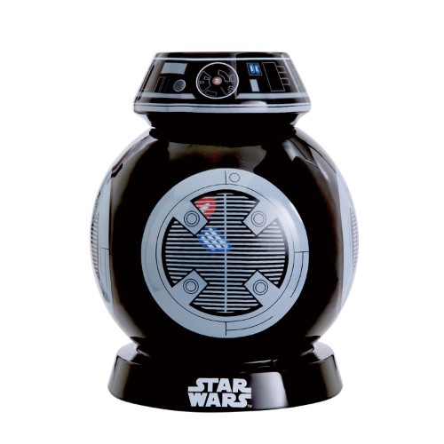 コロコロとした丸いフォルムと愛らしいキャラクター性で男女問わず人気の「BB-8」デザインのトーキングおやつ入れ。