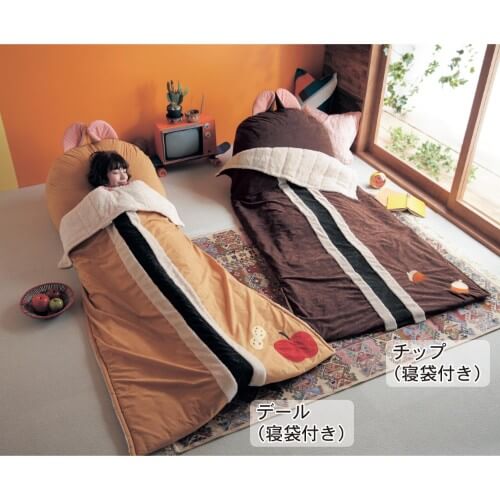 寝袋には大好物のドングリ、座面にChip'n Daleのお名前を刺繍。