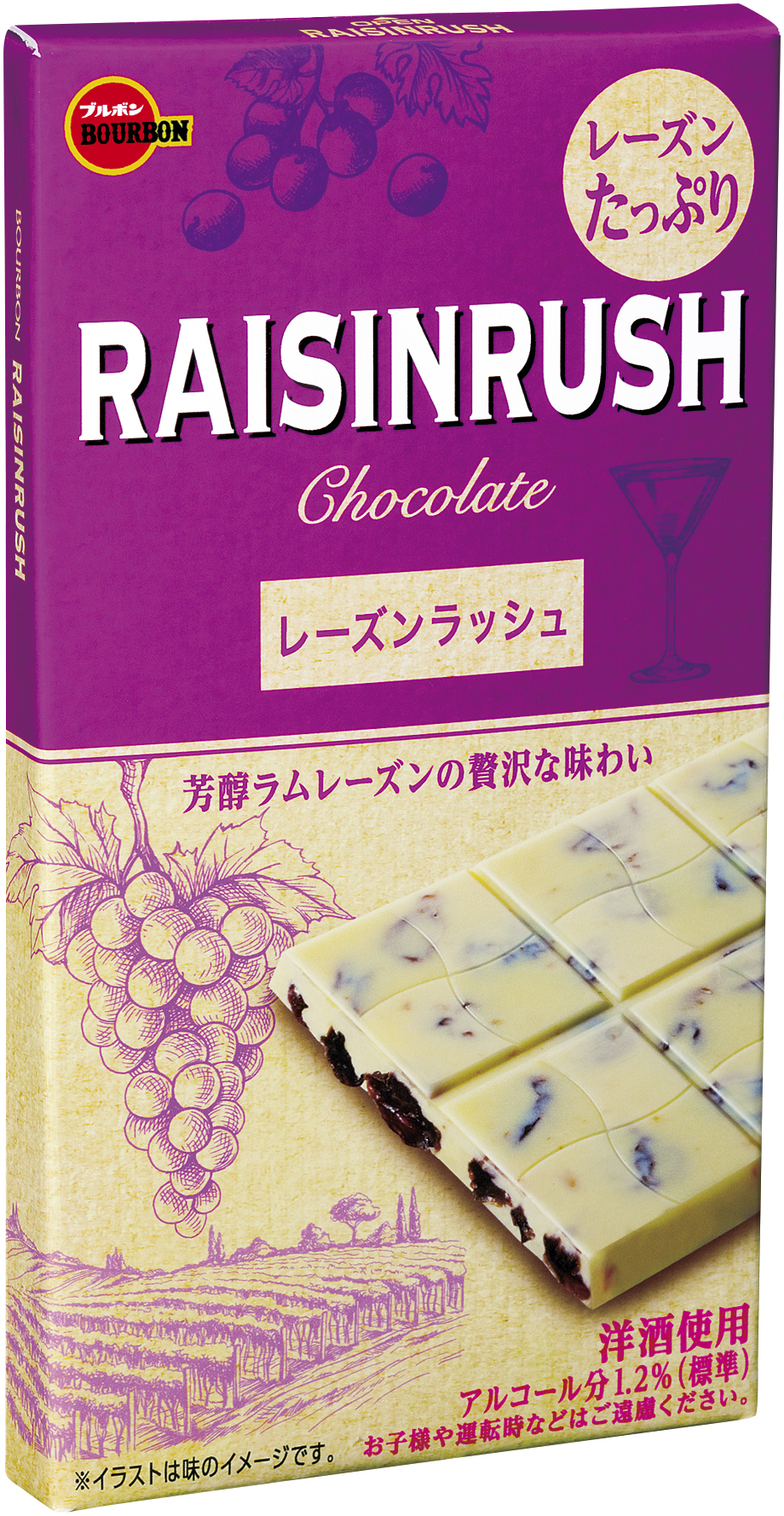 ラムレーズンたっぷりの板チョコ!ブルボン「レーズンラッシュ」