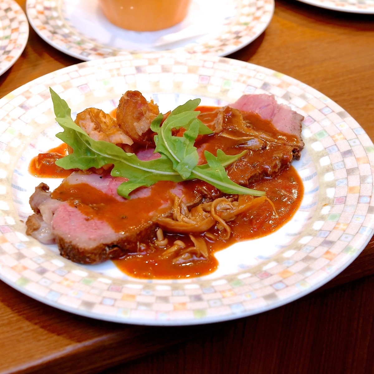 コクとまろやかさのきのこソースと、上品な甘さの和風ソースの2種類の味が楽しめます。