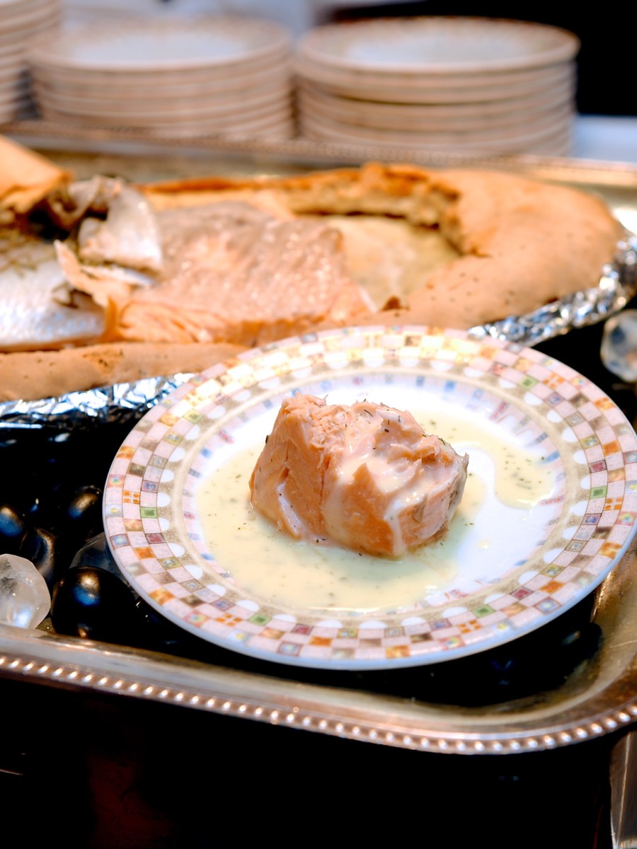 脂が乗ったサーモンは濃厚なバターソースとの相性抜群です。