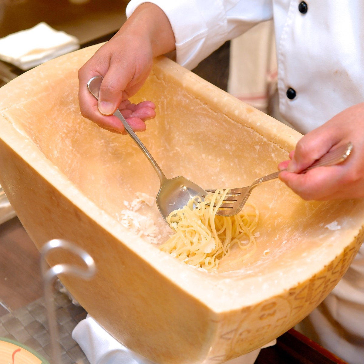 モチモチの生パスタを茹であげ、イタリア産チーズ「グラナ・パダーノ」でからめる贅沢メニュー。
