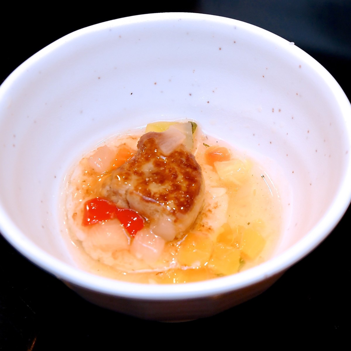 ディナー限定 鉄板 焼チーズリゾット スープ仕立て フォアグラ添え