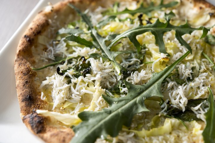 キャベツとシラスをこんがりと焼きあげたピッツァ。