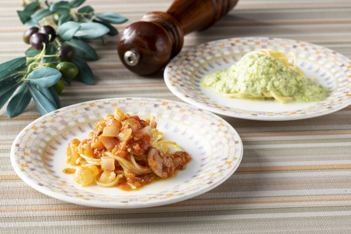 新玉葱のボロネーゼソースと、春キャベツのジェノベーゼソース、2種類から選べます。