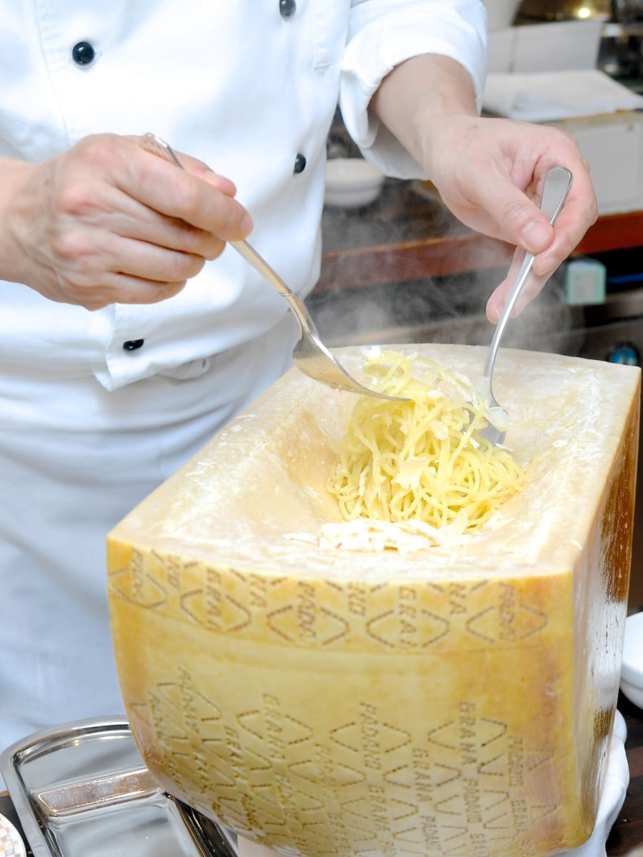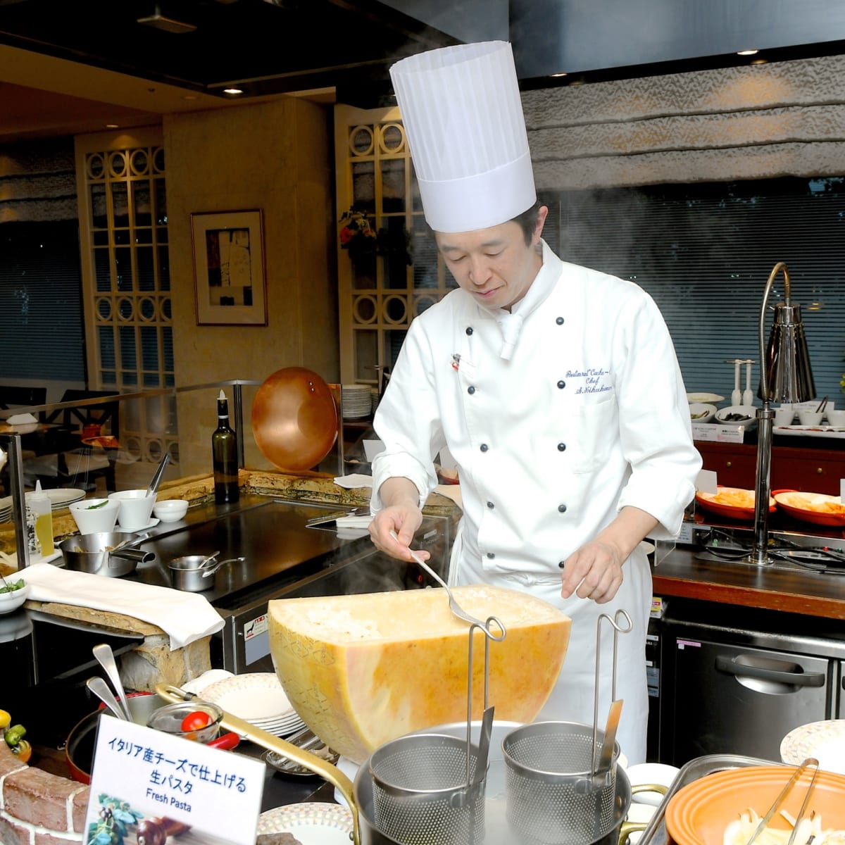 ライブ感覚で楽しめる、シェフが目の前で実演してくれるメニューも豊富にそろいます。