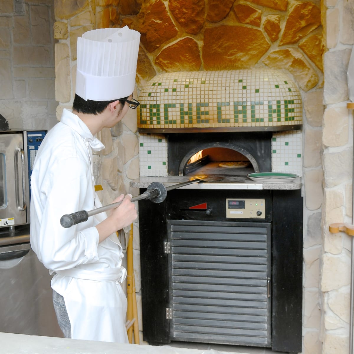カシュカシュ名物の窯で一気に焼き上げる本格ピッツァ。