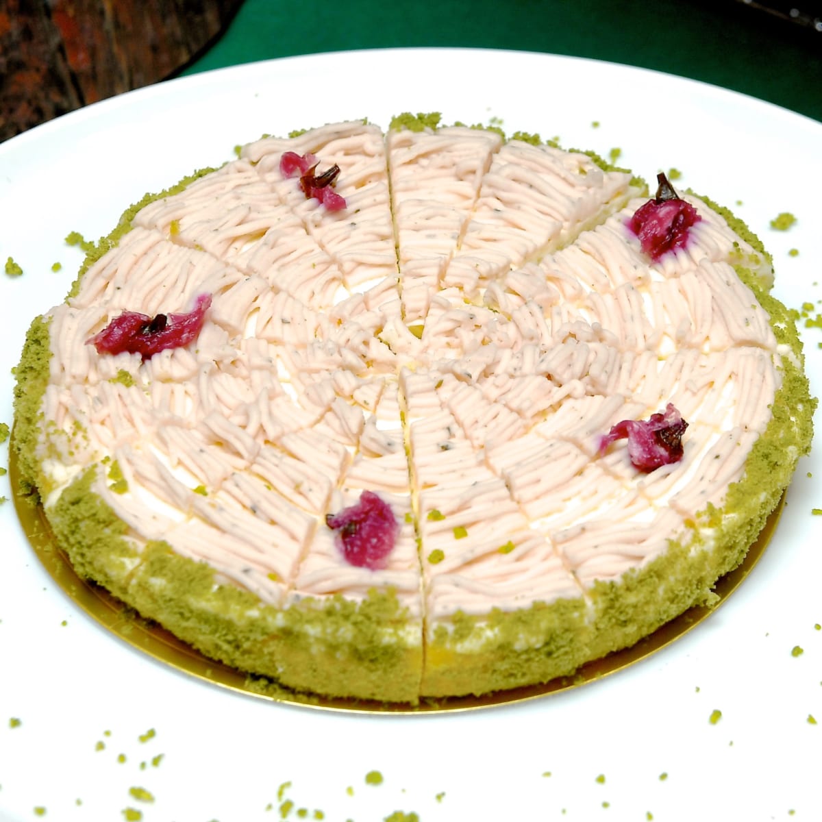 桜のモンブランタルト、桜のシフォンケーキ、桜のブランマンジェ、クレームダンジュ、