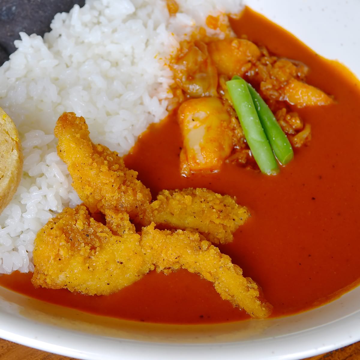 サックリ揚がった衣にレッドカレーがよく絡みます☆