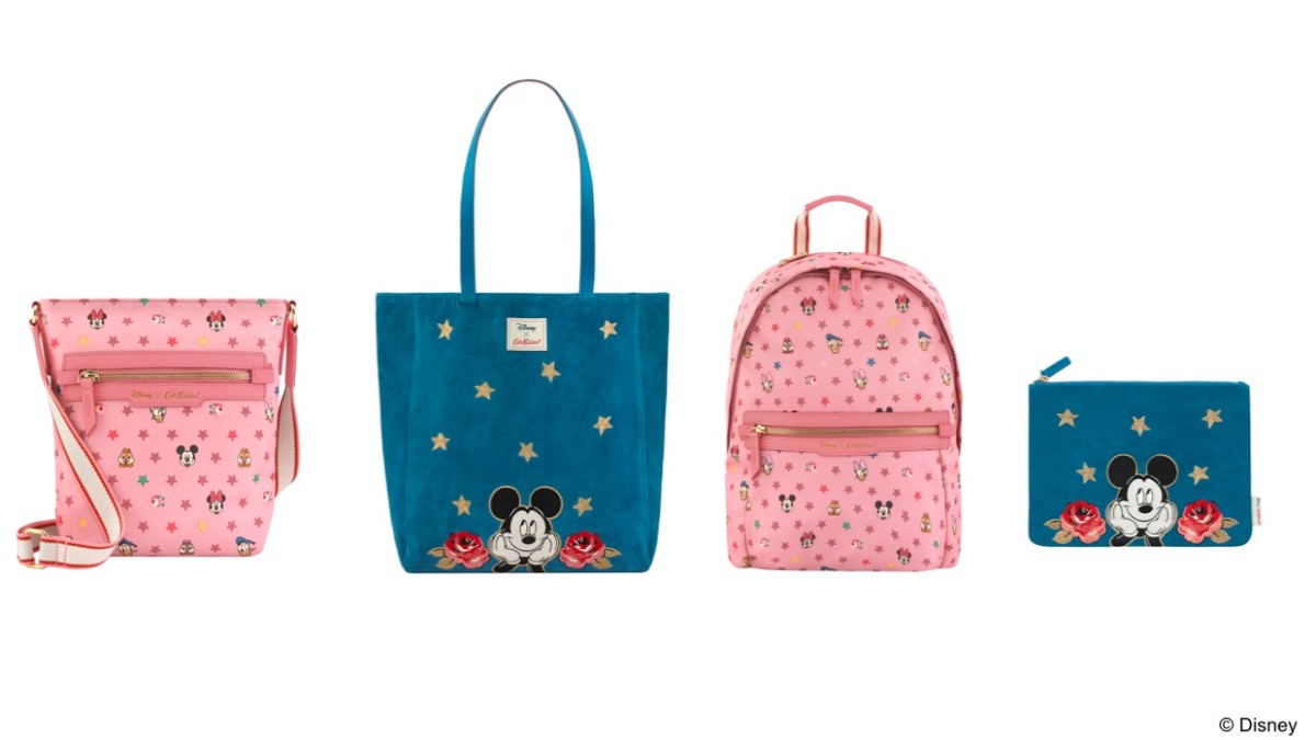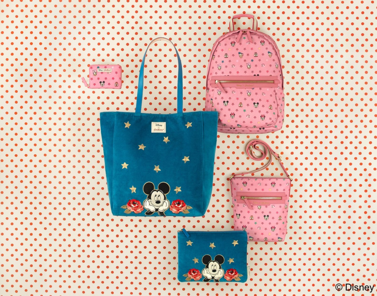 キャス キッドソンのベーシックなバックパックやクロスボディバッグに楽しいキャラクターたちが散りばめられ、ミッキーマウスはやわらかでなめらかで上質なベルベットアイテムで登場します。