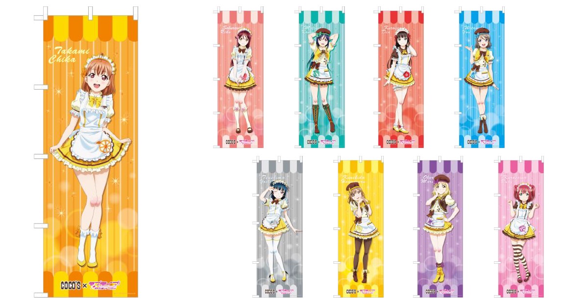 Aqoursメンバー9人がイラストが描かれた、オリジナルのぼりやタペストリーはファン必見です☆