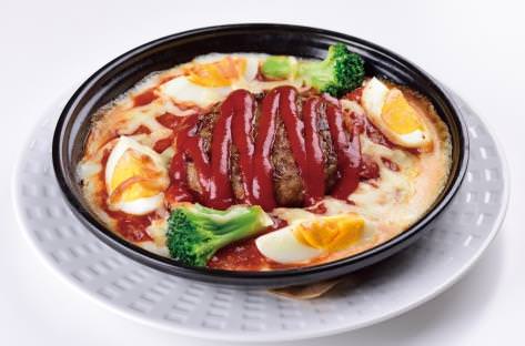 ハンバーグとゆでたまごを乗せたボリューム満点のドリア。