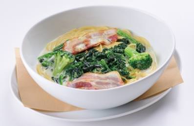 3年生カラーの“緑色”をモチーフにした、ほうれん草とブロッコリーのクリームスープスパゲッティです。