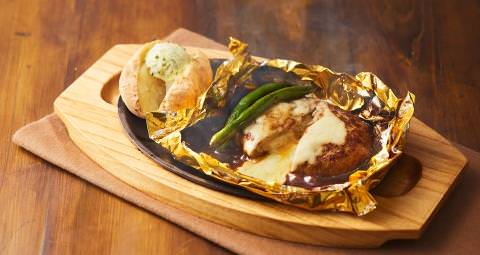 中からチーズがとろけ出るジューシーなハンバーグ。