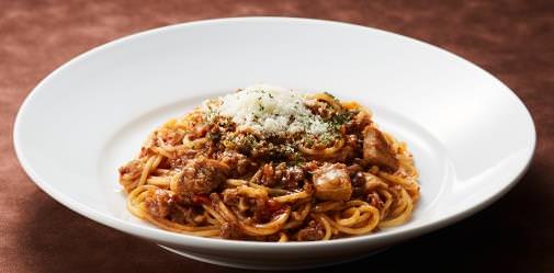 ゴロっとした肉感と濃厚な旨味を堪能できるスパゲッティ。