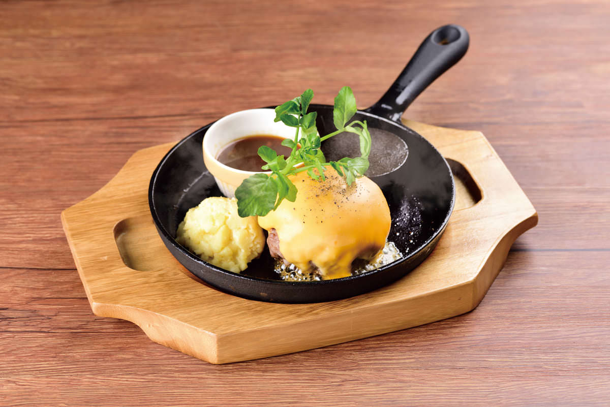 とろとろのチーズが粗挽き肉のうまみたっぷりのハンバーグを包み込みます。