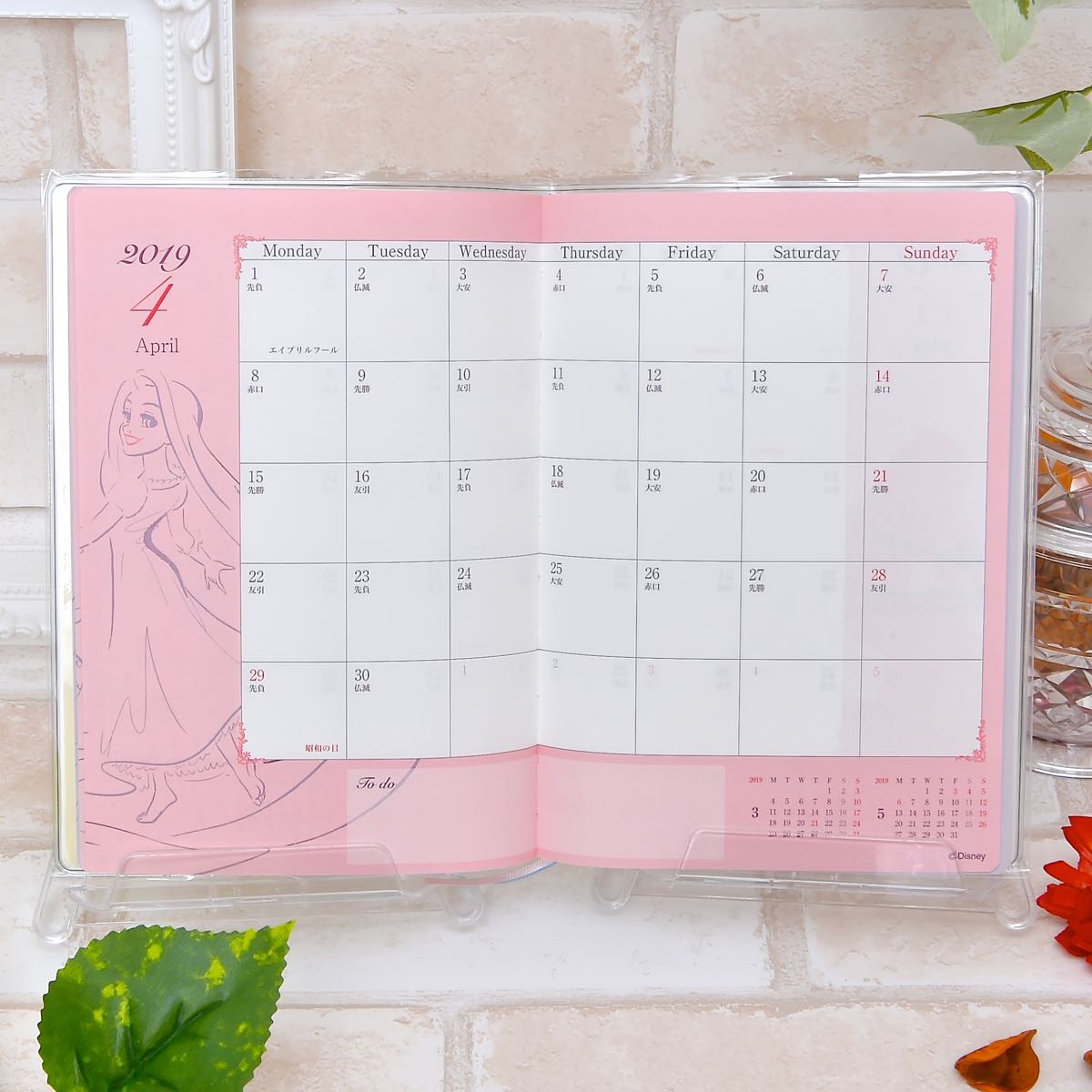 月間予定表は季節ごとにプリンセスのデザインが変わります。