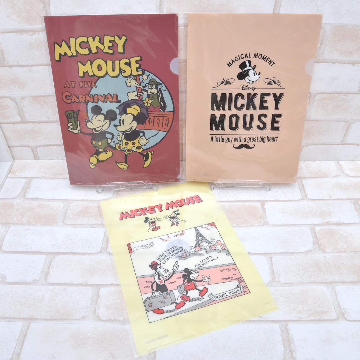 今回は、「ミッキーマウス」デザインの「A4クリアファイル」、「A5クリアファイル」、「チケットサイズファイル」、「A5厚口糸綴じノート」、「B6針金綴じノート」、「そえぶみ箋」を紹介します☆