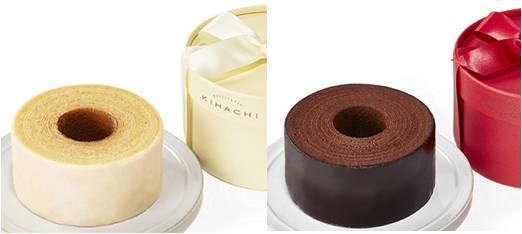 【パティスリー キハチ】左)キハチバームクーヘン(1個)1,080円、(右)キハチショコラバームクーヘン(1個)