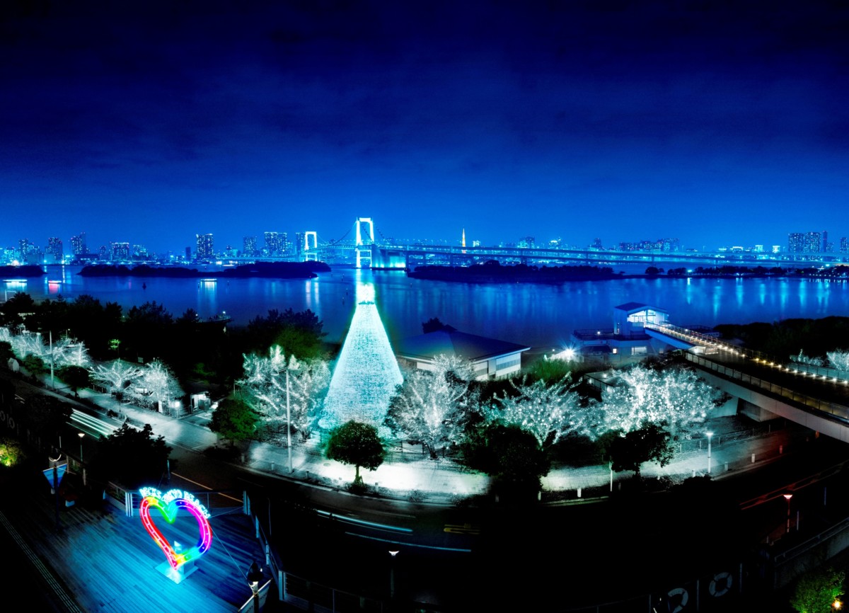 デックス東京ビーチの通年点灯型イルミネーション「お台場  イルミネーション“YAKEI”」が冬バージョンになって美しく夜景を灯します。