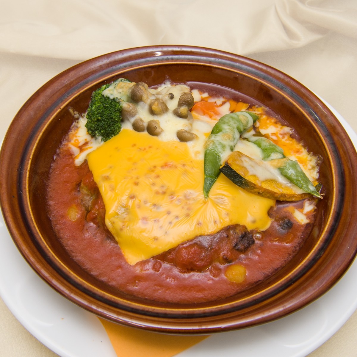 スナップえんどうやかぼちゃ、ぶなしめじなど季節野菜が彩りを添えてくれます。