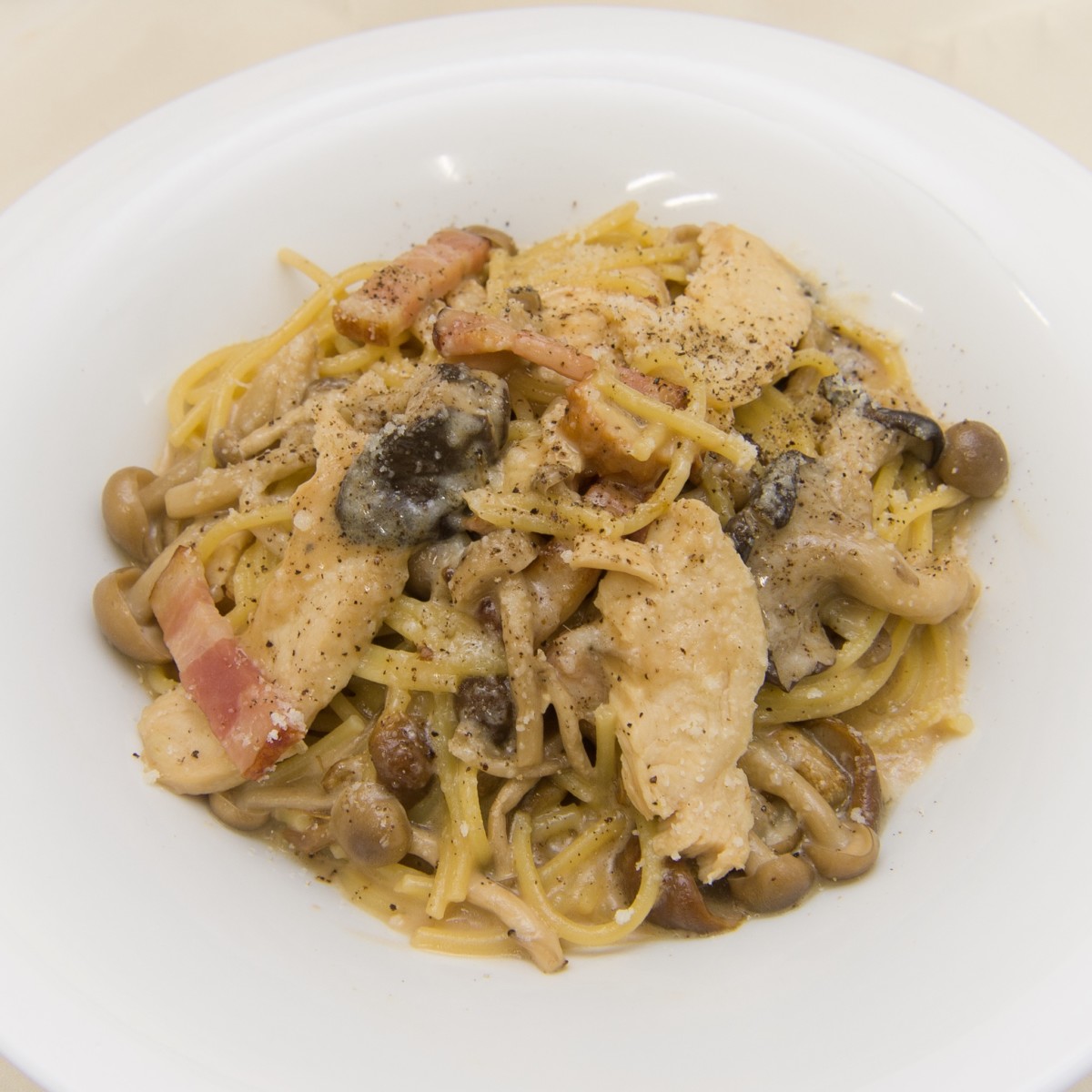 たっぷりきのことチキンのクリームスパゲッティ